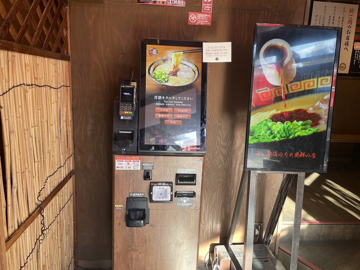 As soon as you step inside, the ticket machine grabs your attention! First, you select your preferred language, then you move on—but wait, “Which one do I choose?” It’s a bit confusing at first. However, once you get used to the layout, it’s surprisingly simple. I quickly spotted the basic ramen option and made my selection. A final touch payment, and the process was complete—smooth and efficient!