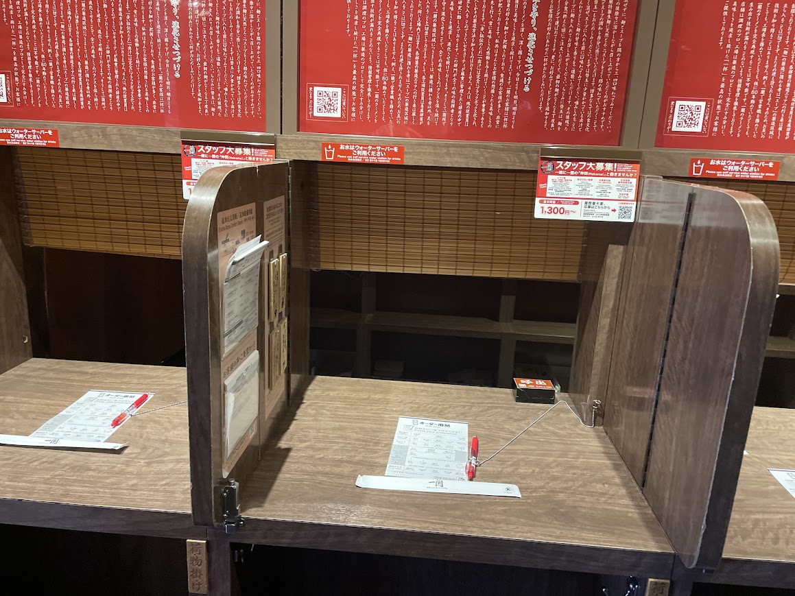 This is the famous "Solo Dining Booth" everyone talks about. It’s amazing—partitioned on both sides to create a completely private space, leaving just you and your ramen in perfect harmony.