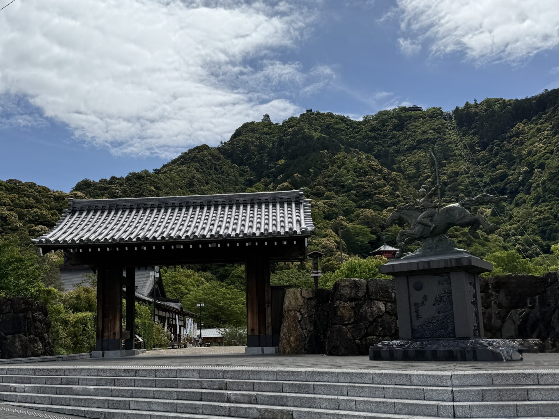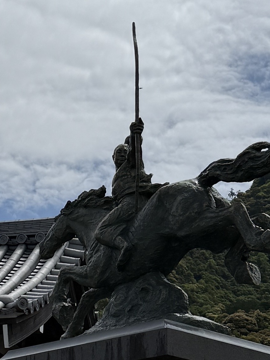 Right at the gate—bam! The statue of young Oda Nobunaga.