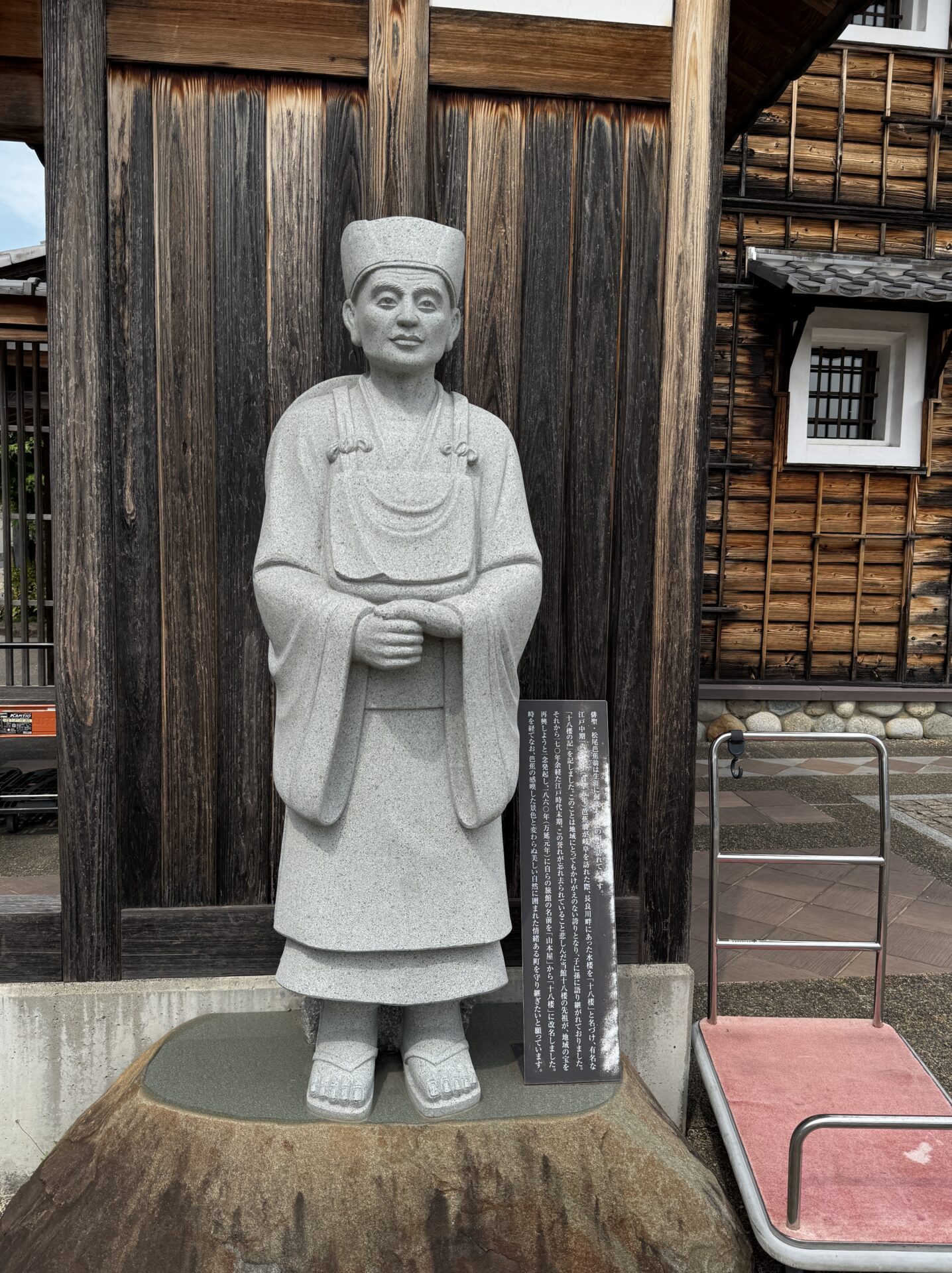 At the entrance of Jūhachirō stands none other than a statue of Matsuo Bashō.