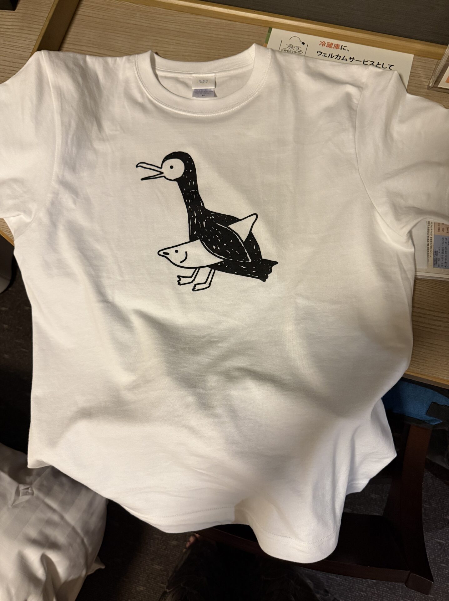 I snagged a T-shirt with a cormorant holding an ayu fish. Kawaramachi just can’t stop pushing the ayu & cormorant theme!