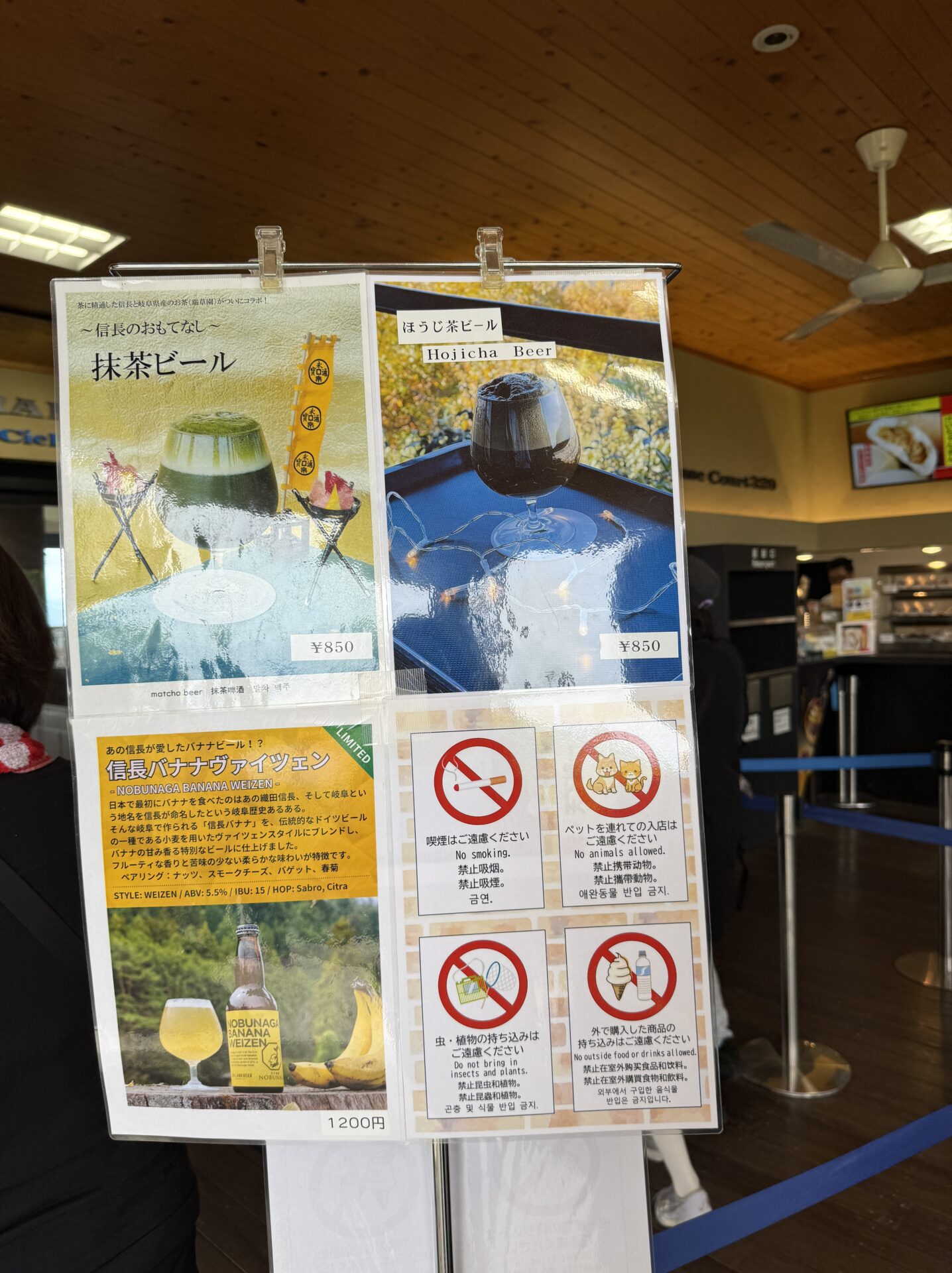 While waiting, a poster caught my eye—featuring “Matcha Beer,” “Hōjicha Beer,” and even “Banana Beer”!