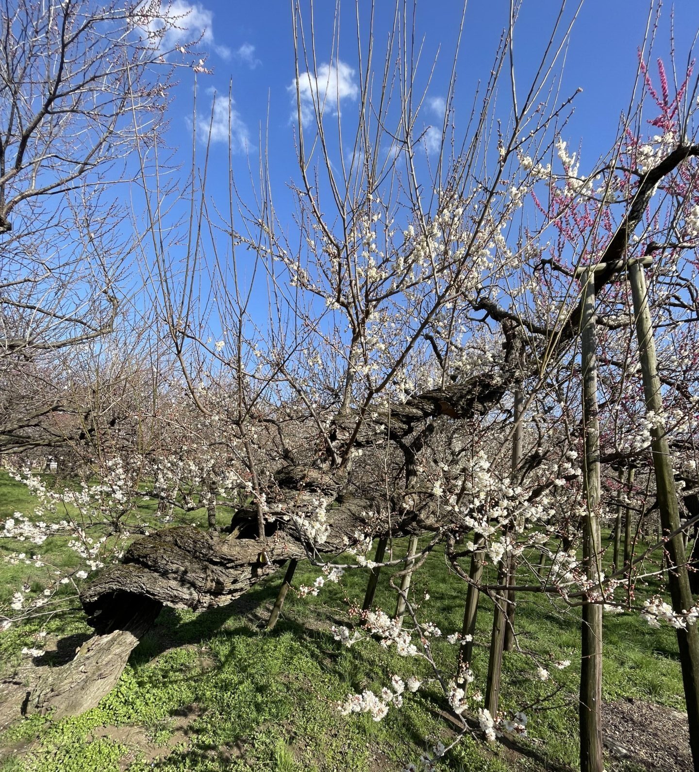 The contrast of white, pink, and deep red blossoms is simply stunning, with a gentle and sweet plum fragrance filling the air. Bathed in the warm spring sunlight, being surrounded by these vibrant plum blossoms is the ultimate relaxation.