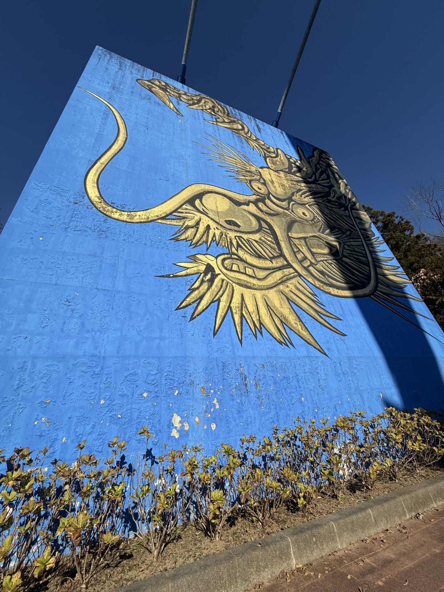 At the base of the bridge cables, there’s a dragon illustration.