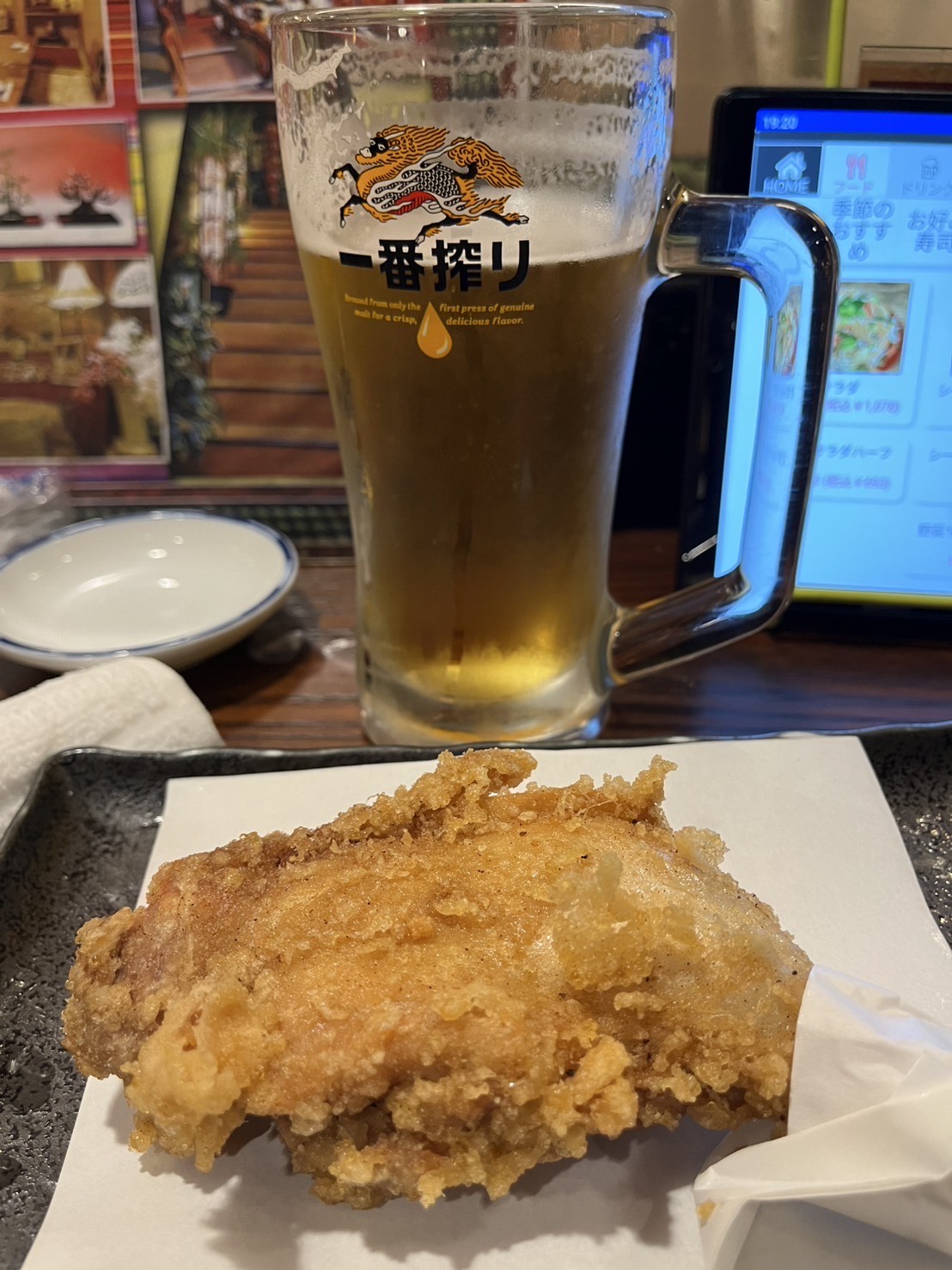 Before long, what we received was a photo of fried chicken thighs and beer!?