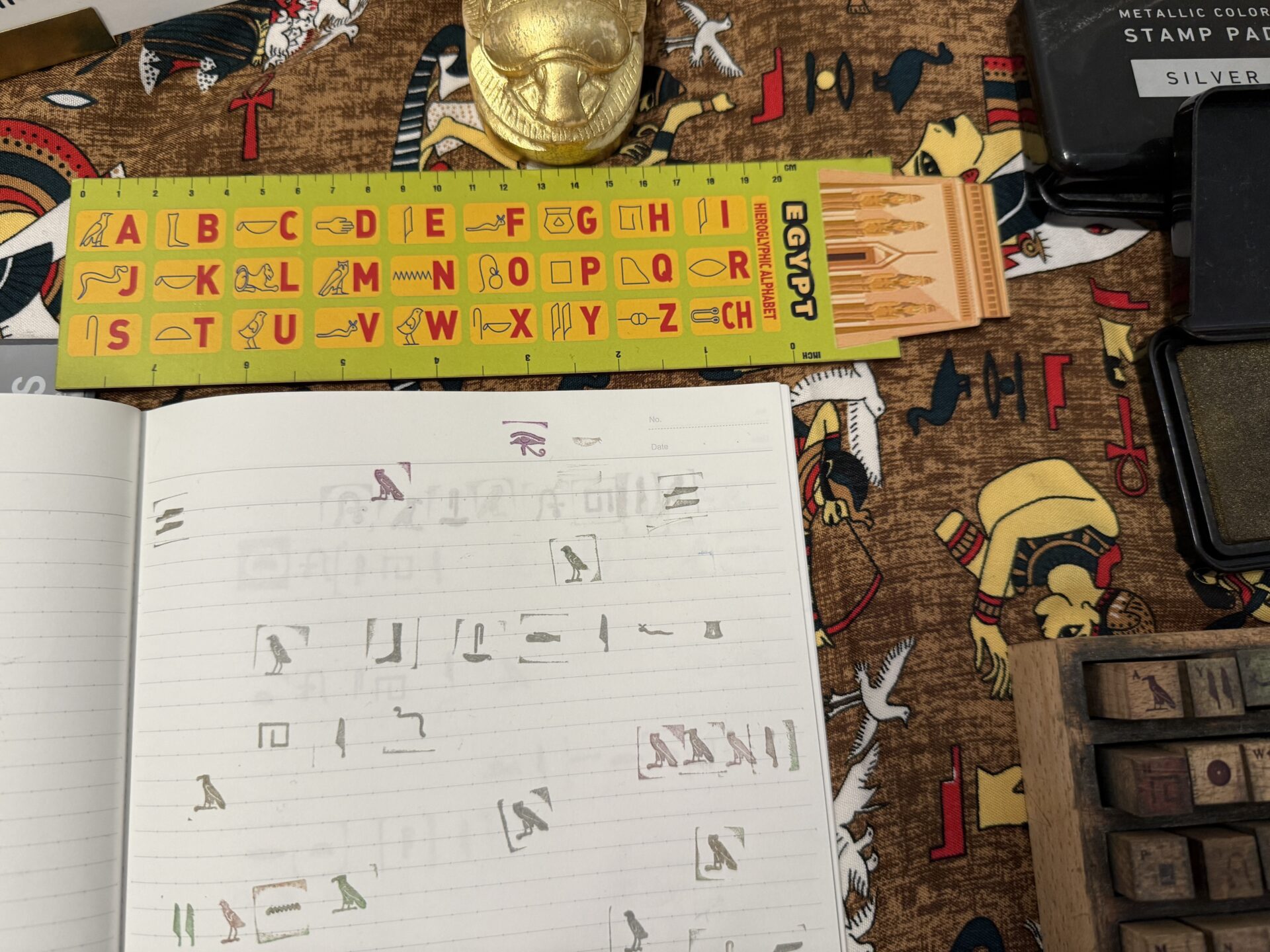 Stylish rulers and clear files decorated with ancient hieroglyphs
