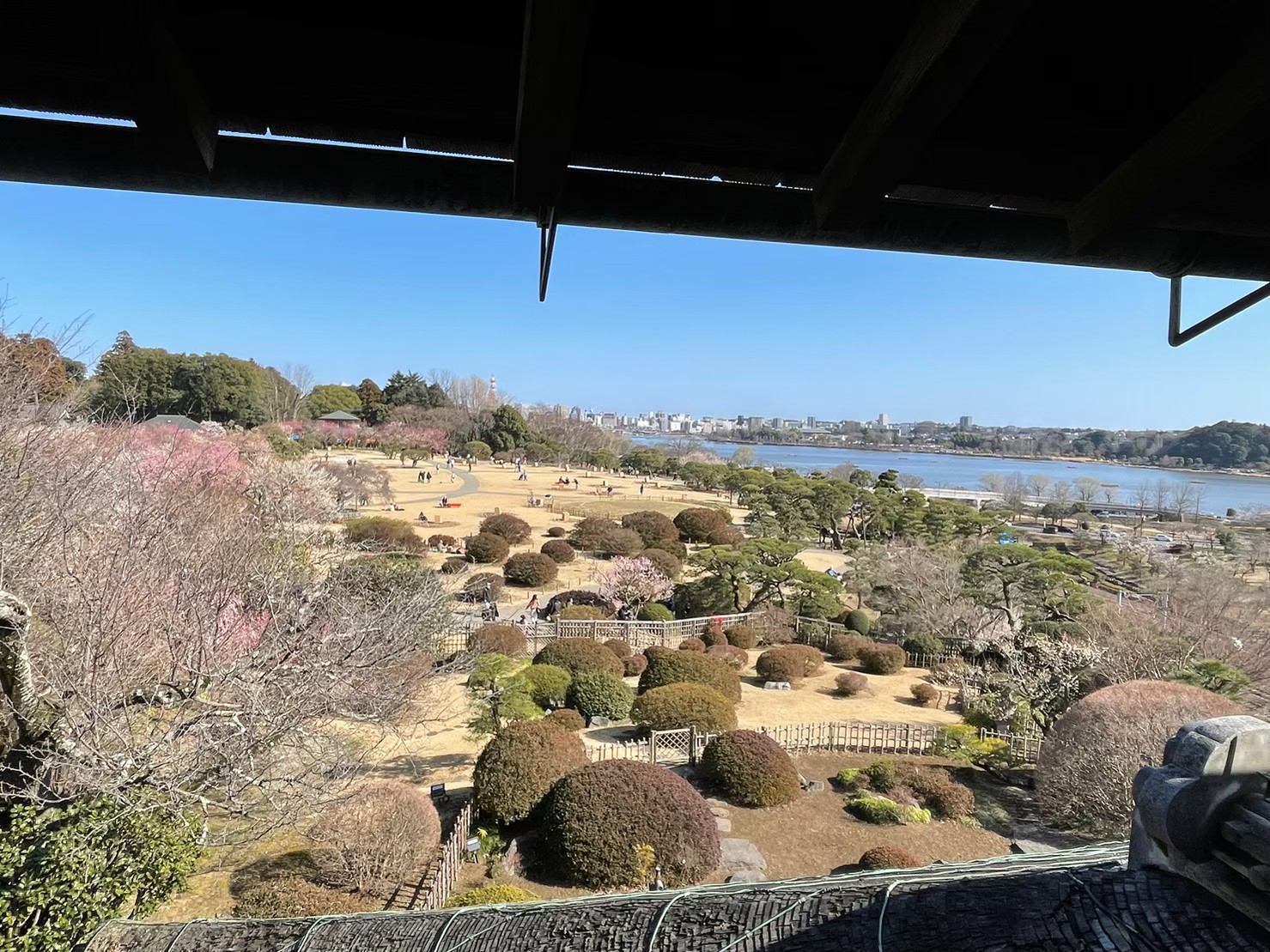 偕楽園の中にある絶景スポット。歴代の藩主も愛した優雅な建物で、2階から眺める梅の庭園はまさに絶景! これが殿様の視界か…⁈