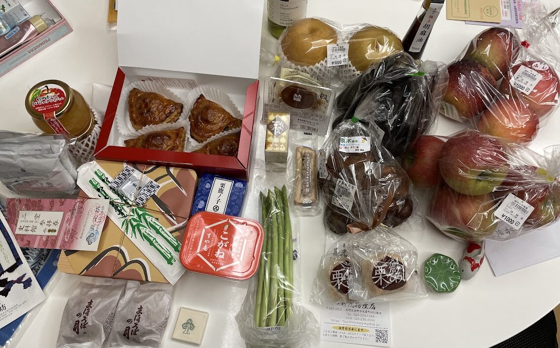 物産展もなかなかの大盛況で、なんと「フジ」「秋映」「シナノスイート」などなど信州らしいりんごが勢ぞろい🍎