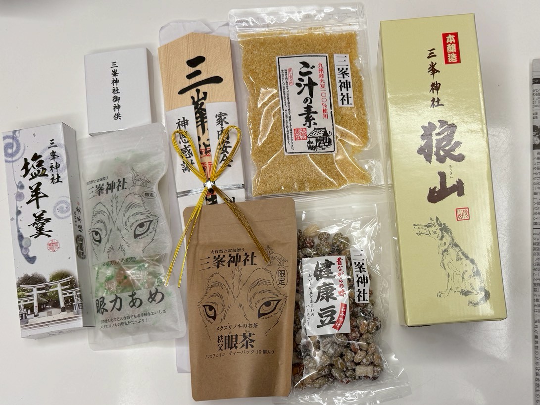 三峰神社の名入りのお土産を買うなら、宿坊・興雲閣のお土産コーナーが一番そろっています!