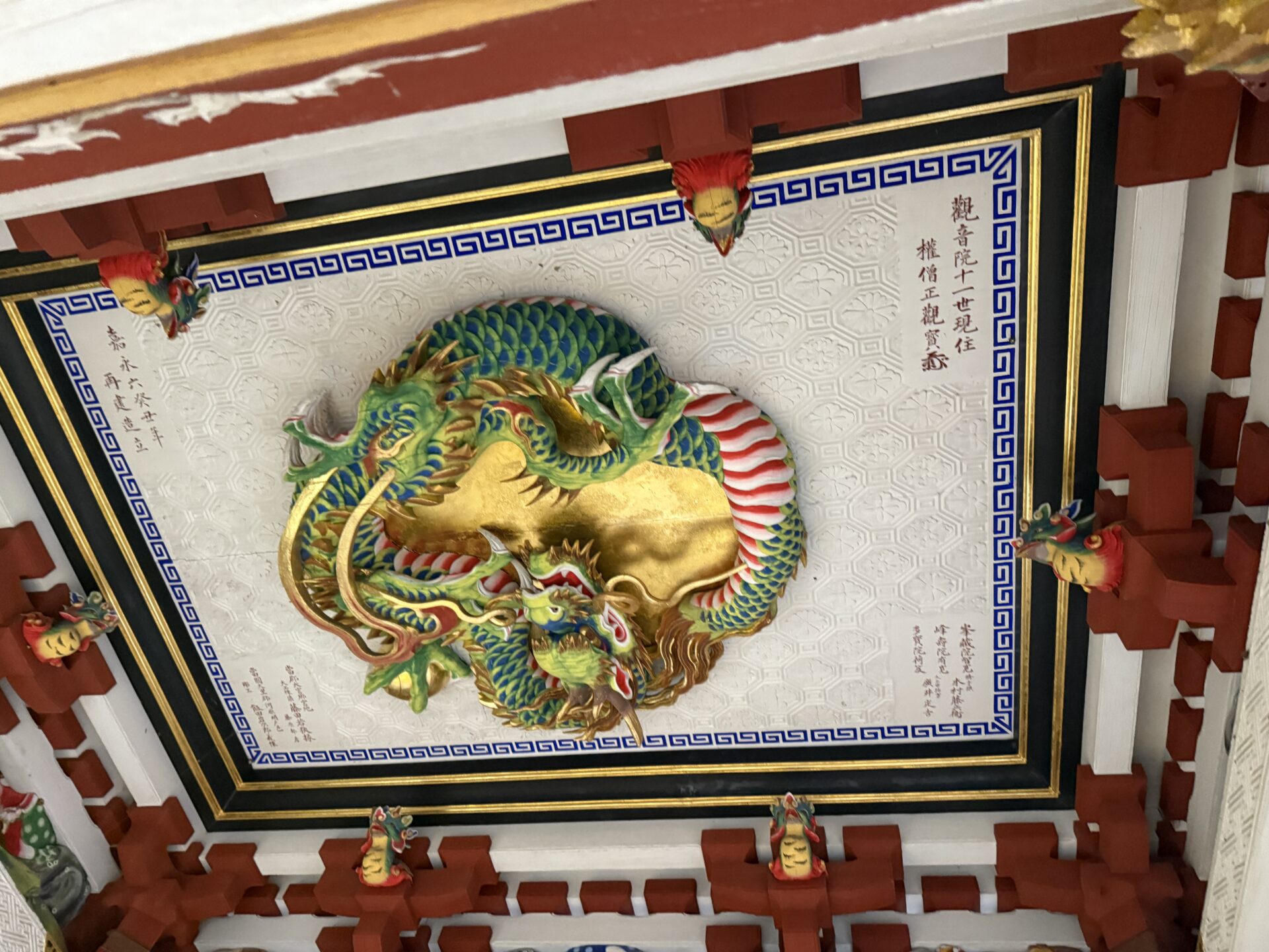 そしてここにもいました、天井の龍。 見上げると、さっき山門で目が合った龍とはまた別の迫力。