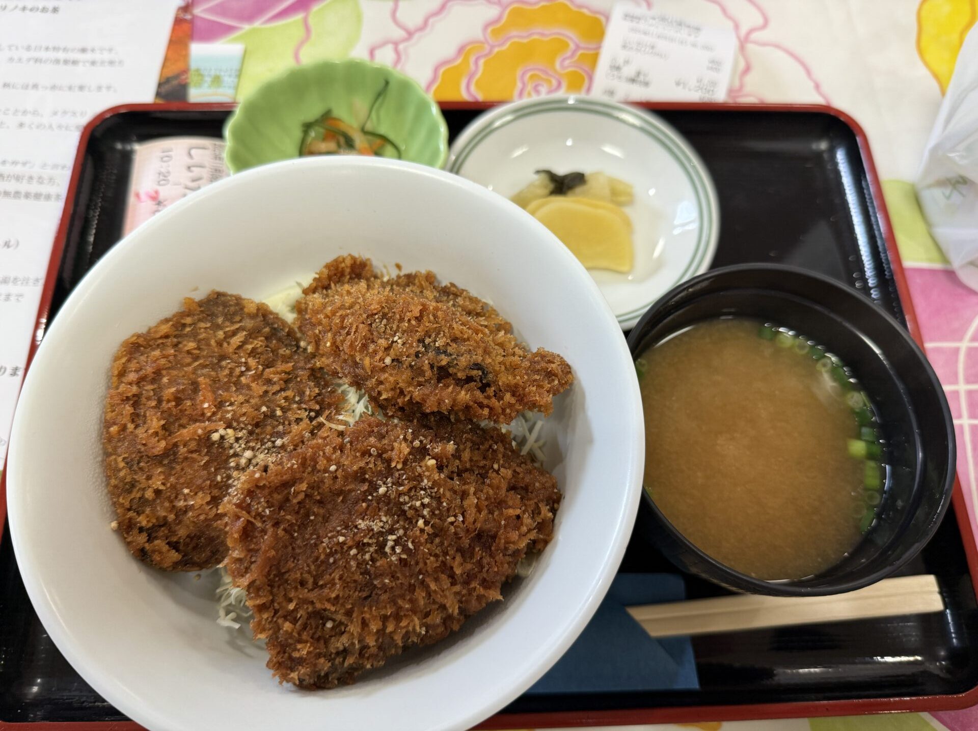 お目当ての三峰名物シイタケ丼は、わらじカツ丼のような迫力の特大きのこ!