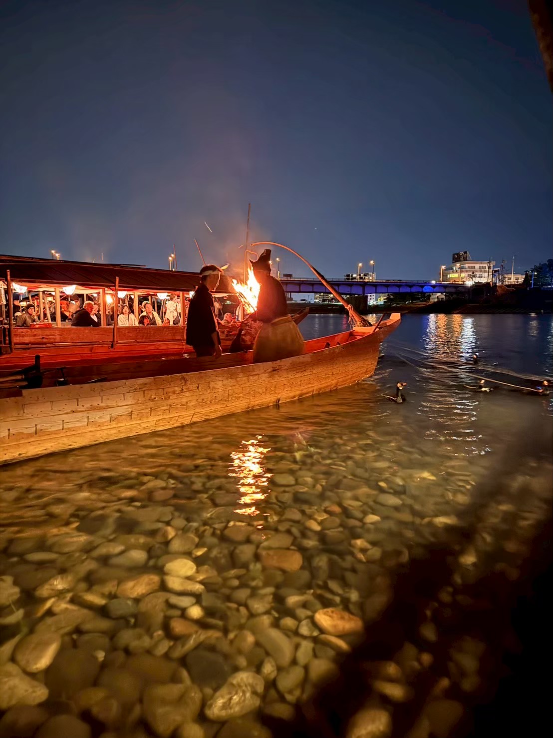 鵜飼が終わると、鵜たちが船の近くにご挨拶に来てくれます。
