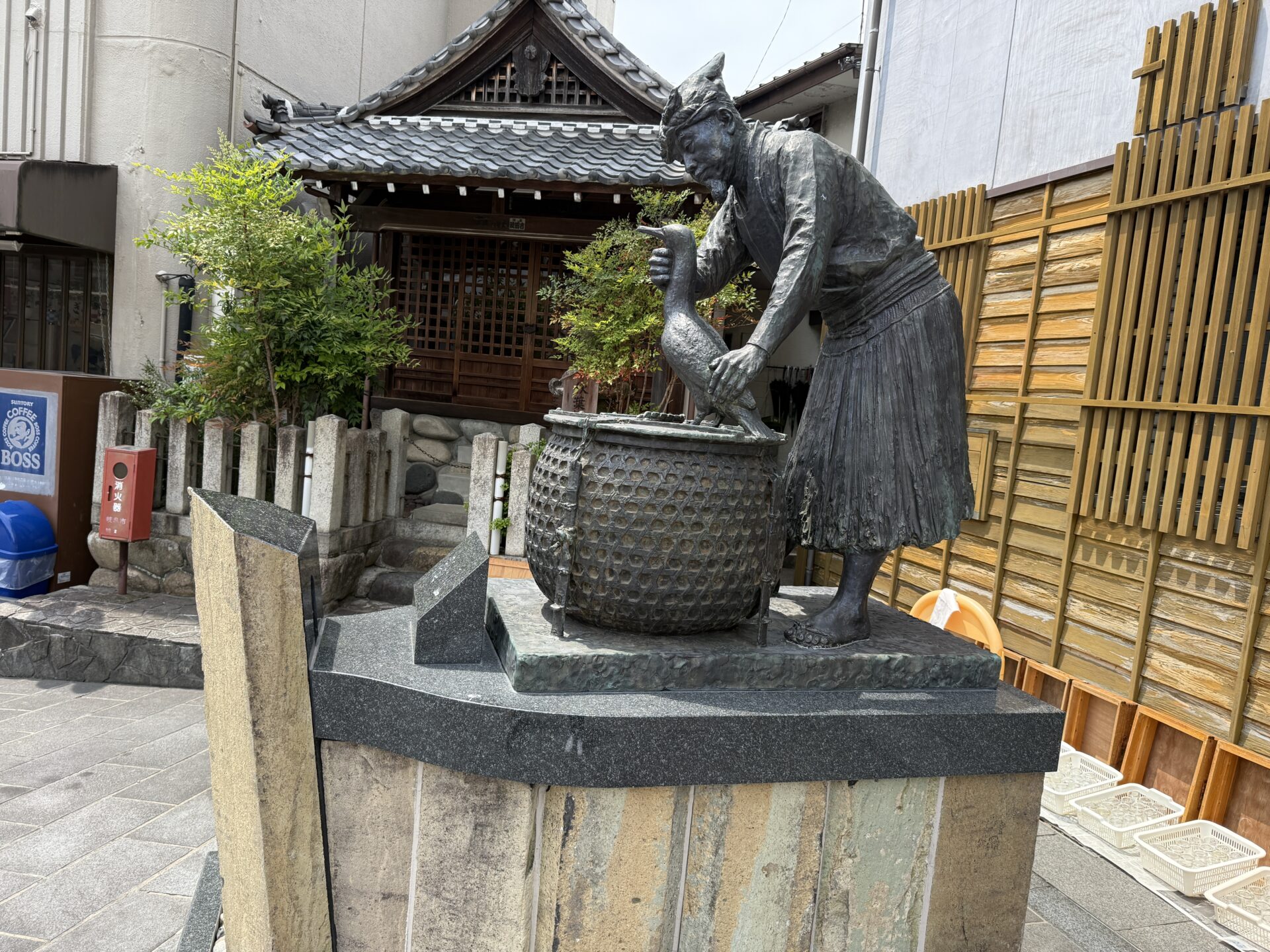 🦆集合場所には、鵜と鵜匠の銅像!
