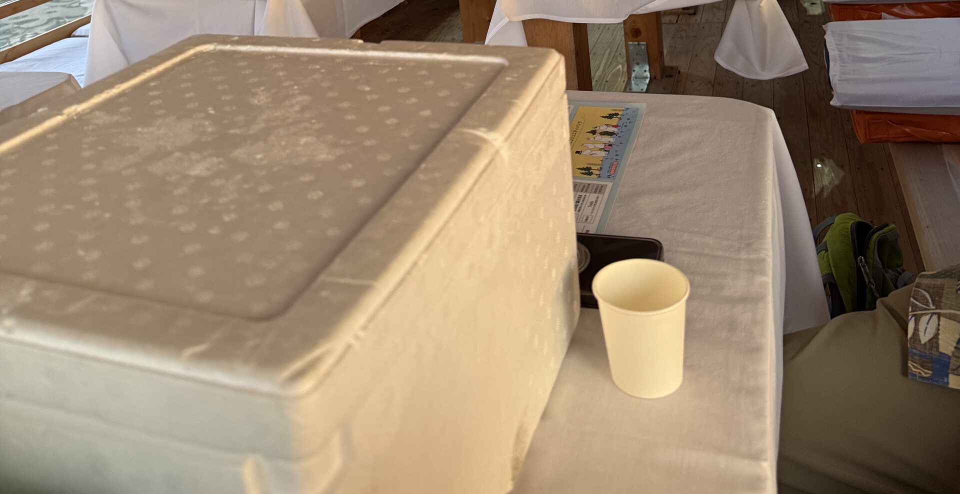 立派なお弁当は、大きな発泡スチロールの箱に入ってて、温かさキープ完璧。