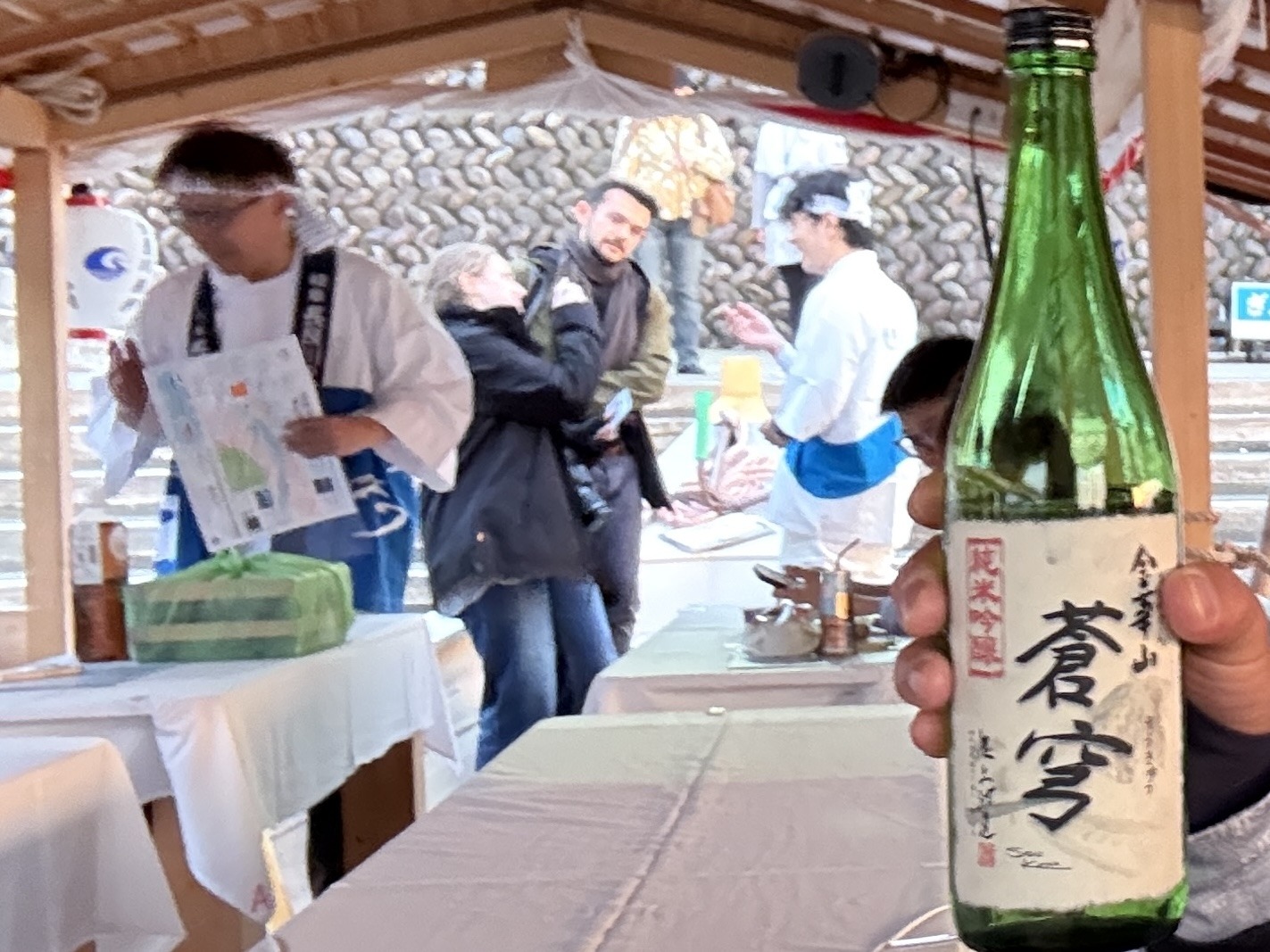 集合場所のすぐ前にある酒屋さんでおすすめの日本酒もゲットして、準備万端!🍶