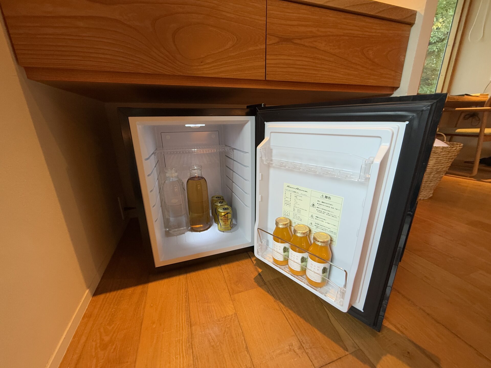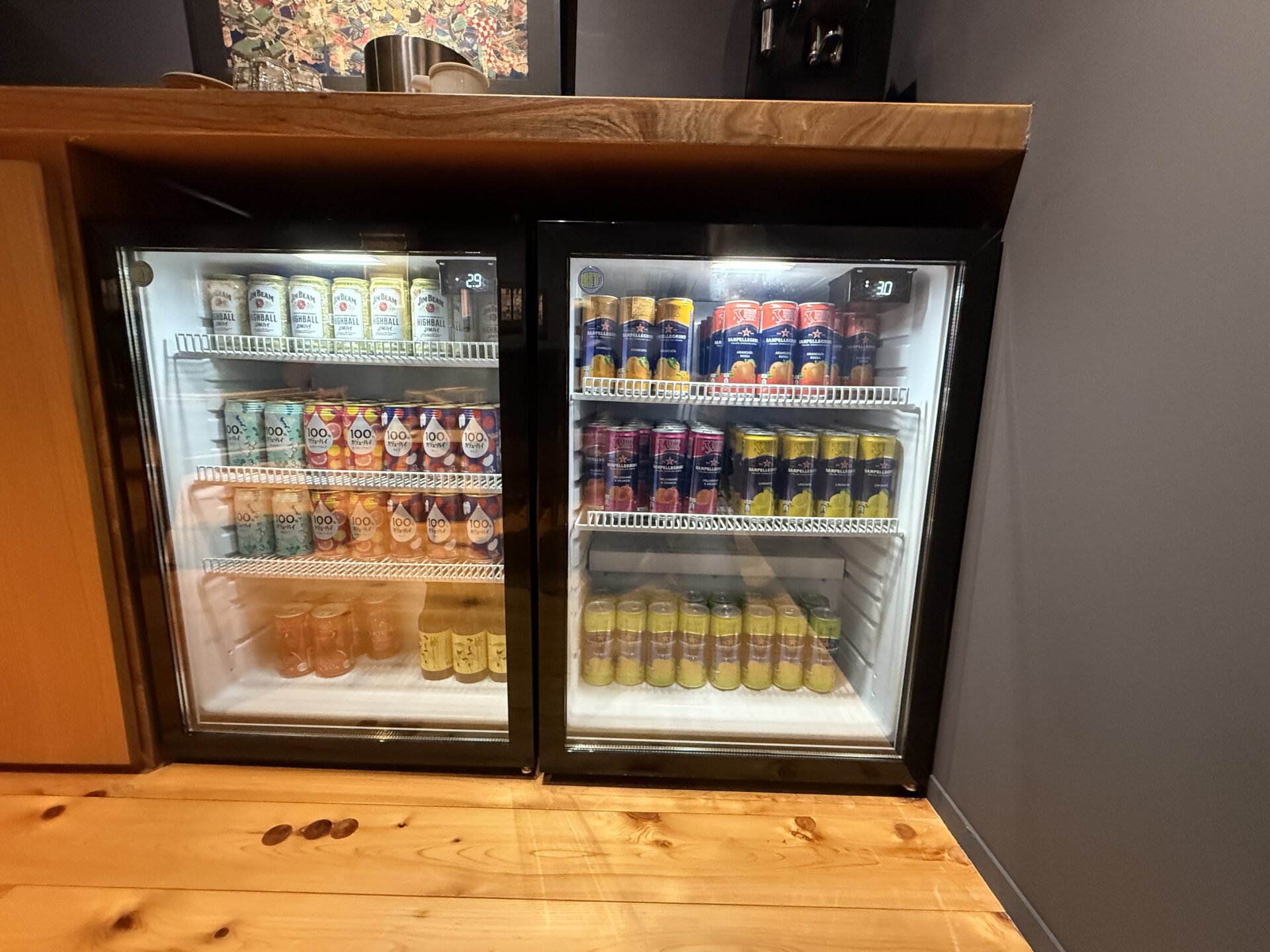 冷蔵庫の中はすべてフリーで、ビールやジュースが人数分用意されています。