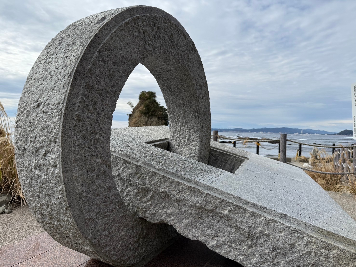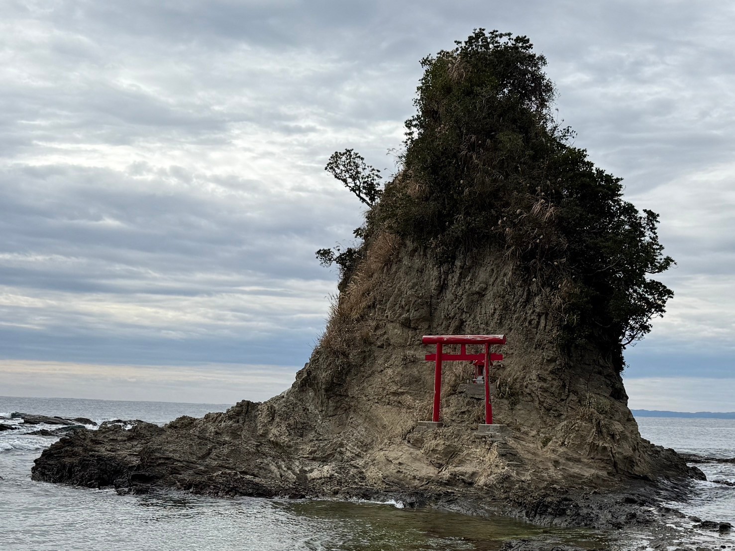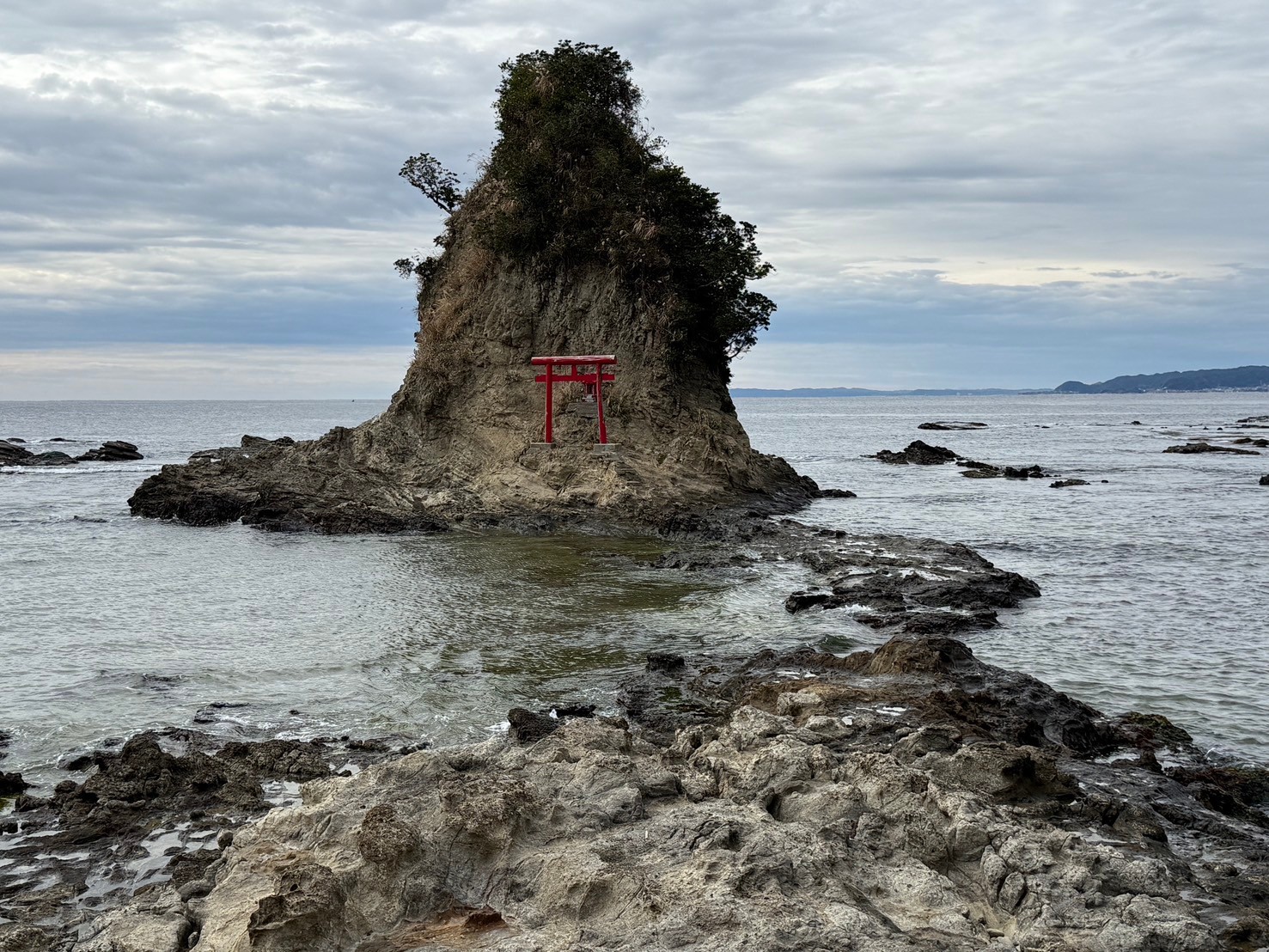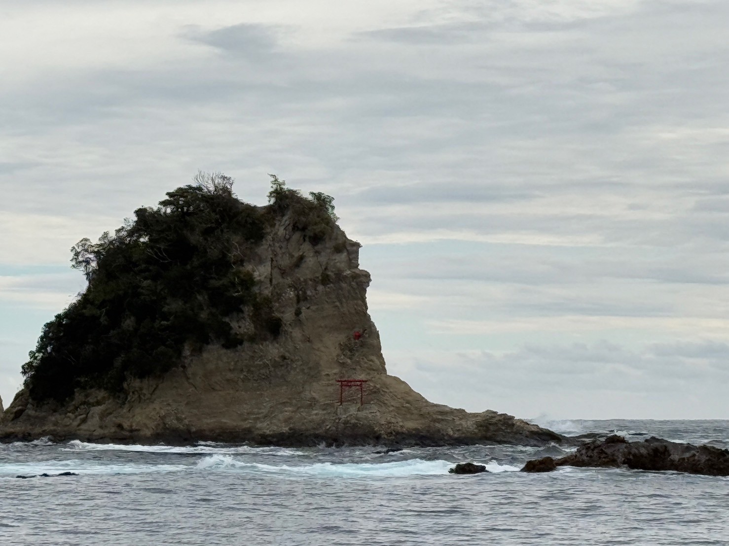 大弁天を海側からお参り出来るスポットへ到着! もっと近くに行きたいとつぶやいたら、座礁しますよって。ですよね。