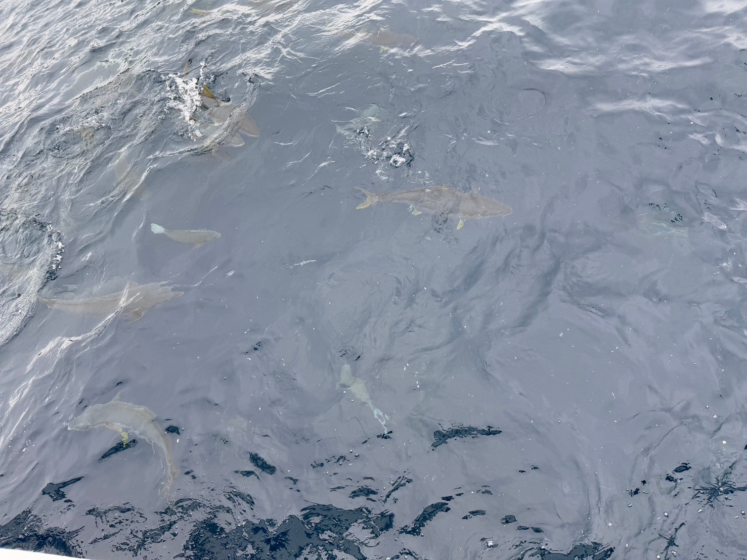 船頭さんが「あの下の方にいる赤いの、鯛だよ!」って教えてくれたけど、どれどれ…って探してるうちに、餌まき終了!