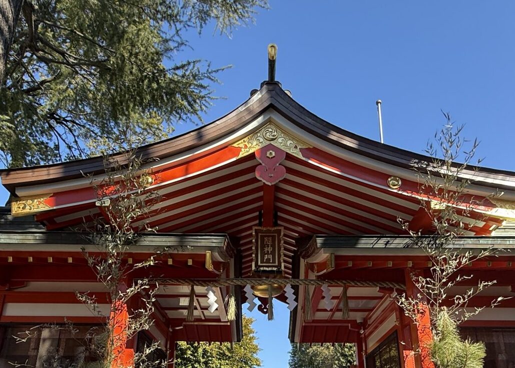 随神門と大鈴、青空が最高の背景