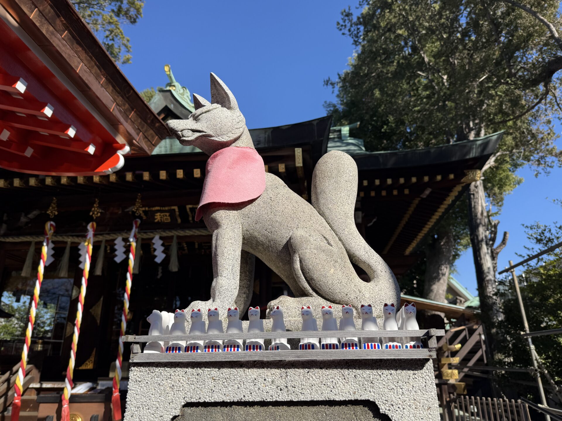 と、キツネの像で稲荷神社感!