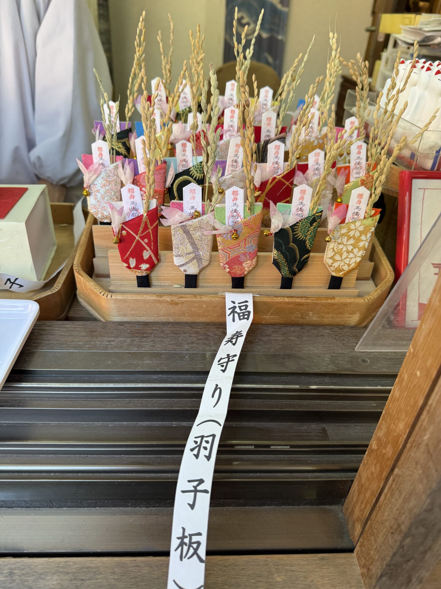 社務所で手作りの羽子板守りを発見。