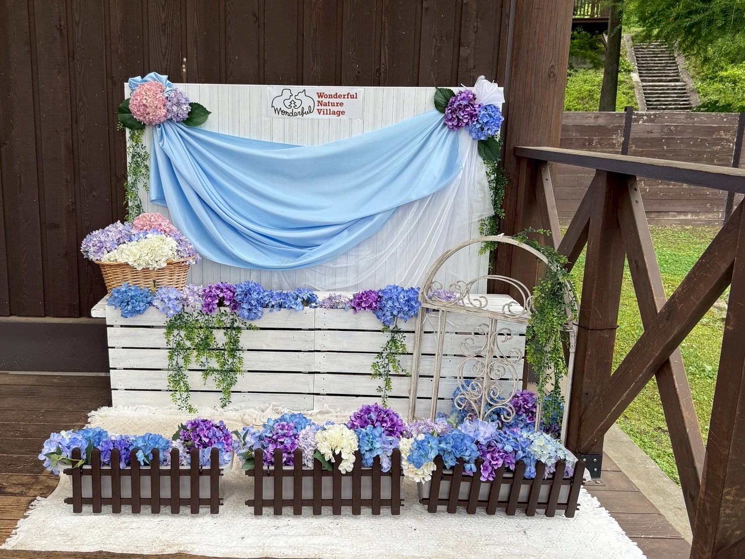 📸写真スポット: 寄せ植えコーナー、アナベルの山道、ワンちゃんフォトブース