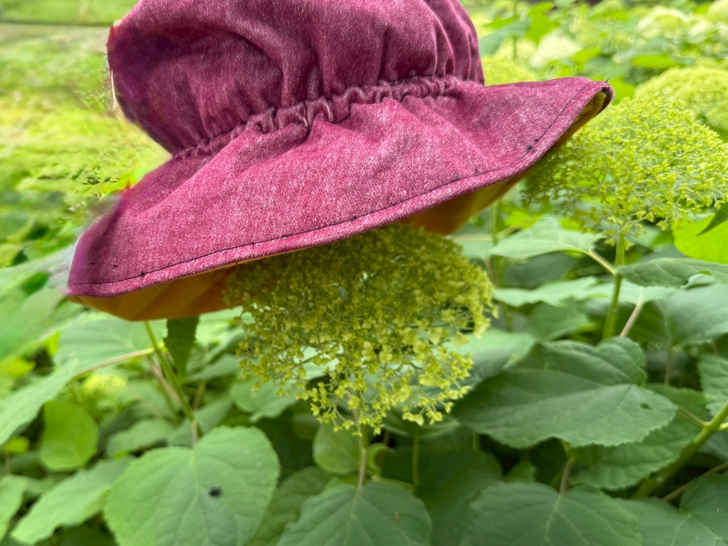 ばぁばショップで購入した帽子を紫陽花にかぶせてみました
